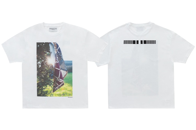 今回のコレクションでは、川内氏の写真作品に〈NOMARHYTHM TEXTILE〉のテキスタイルアートが重なり、静と動、記憶と感覚が織りなす3型のTシャツが完成。