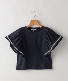 インパクトのあるフリルスリーブとはしごレースが可愛らしい半袖Tシャツです♪カジュアルからキレイめまで可愛く合わせやすいアイテムです☆