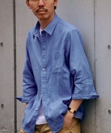 〔LARGE〕SHIPS: SOLOTEX(R) サフィラン リネン 7分袖 シャツ