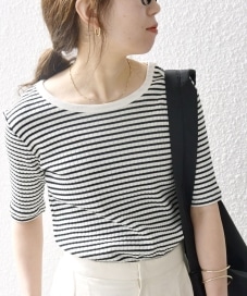 〔ONE SIZE〕SHIPS any:〈洗濯機可能〉テレコ リブ ハーフスリーブ TEE
