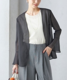 〔ONE SIZE〕〈手洗い可能〉シアー オーガンジー フレア スリーブ ジャケット