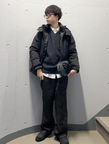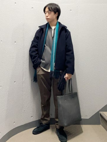 今回はパンツをグレー、インナーを少しカジュアルにまとめました。