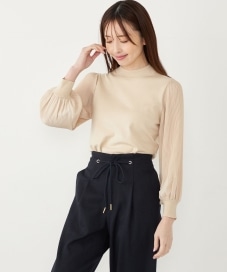 【素材感・着心地】柔らかいニット素材でチクチク感は感じません。袖のプリーツがポイントになり一枚でもおしゃれな印象。