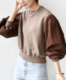 ■素材感:柔らかくて肌触りの良い素材です。袖部分はややハリ感のあるコットンナイロン素材です。