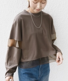〔ONE SIZE〕〈手洗い可能〉シアー コンビ プルオーバー ロング スリーブ