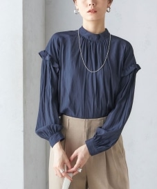 着心地 : パールボタンがポイントのジレです。セレモニーやお仕事はもちろんデニムなどと合わせて、普段使いもしていただけるアイテムです。