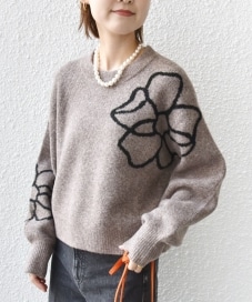 〔ONE SIZE〕【WEB限定】〈手洗い可能〉ジャカード フラワー ニット プルオーバー