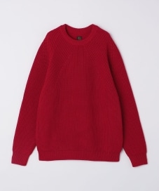 目の立った綺麗な編み目で、ずっしりのした厚みのあるニット。発色が良いのでシンプルなコーデとも合わせやすい。