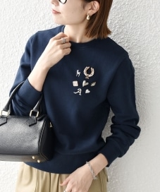 ブローチ風のビジューモチーフがポイントのクルーネックスウェット◎