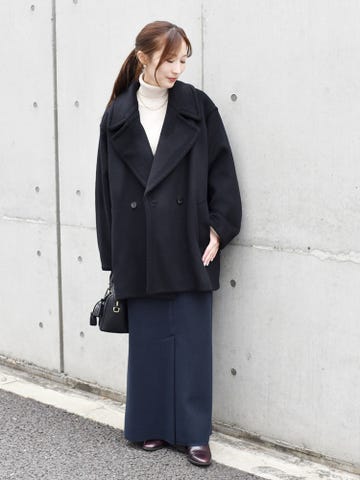 【素材感・着心地】タイトスカートですがフロントにスリットが入っていて歩きやすい一着です。