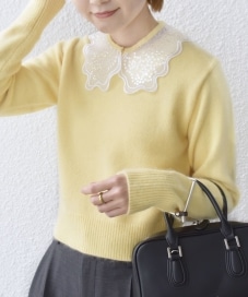 〔ONE SIZE〕【WEB限定】〈手洗い可能〉布帛 襟付き ニット プルオーバー