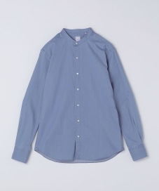 【素材感・着心地】バンドカラーのデニムシャツ。ドレスシャツに近いシルエットで、キレイな着こなしに。