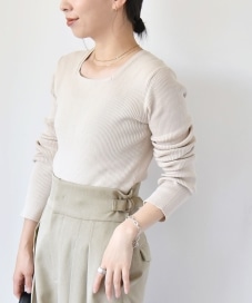 〔ONE SIZE〕quaranciel:〈手洗い可能〉コットン スクエアネック リブ ニット