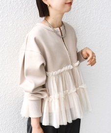 〔ONE SIZE〕【WEB限定】 〈手洗い可能〉ダンボール × チュール ジップ 羽織