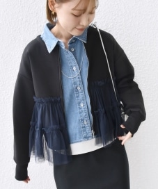 〔ONE SIZE〕【WEB限定】 〈手洗い可能〉ダンボール × チュール ジップ 羽織