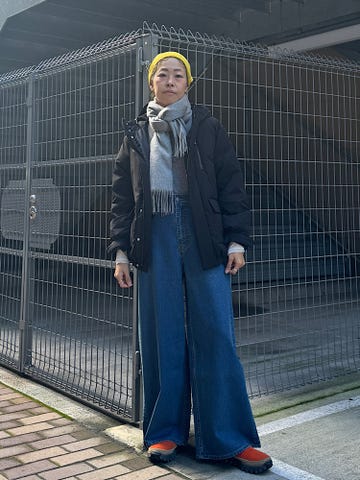【素材感・着心地】表地は起毛感のある素材感でレイヤードされてる様に見える白の部分はドッキングされています。
