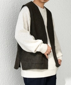 〔LARGE〕SHIPS any: 〈手洗い可能〉リラックス ツイード ジップ ベスト◇