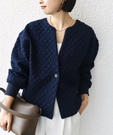 〔ONE SIZE〕《一部追加予約》【WEB限定】〈手洗い可能〉キルティング ジャカード カーディガン