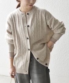 〔ONE SIZE〕《追加予約》【WEB限定】SHIPS any:〈手洗い可能〉ヤク ケーブル クルーネック ニット カーディガン 2