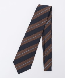ネイビーとブラウンの王道な配色のネクタイですが、コットンミックスの生地を選び、ネクタイのみツヤが出過ぎないよう調整。