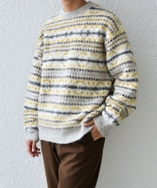 〔MEDIUM〕SHIPS any :〈手洗い可能〉フェアアイル シャギー クルーネック ニット◇