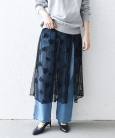 〔ONE SIZE〕bon_meur: フラワー ビーズ ラップスカート × ストレート パンツ セット