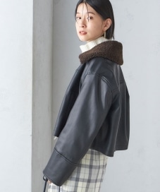 【素材感・着心地】ボアカラーのフェイクレザージャケット。