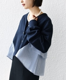 〔ONE SIZE〕【WEB限定】〈手洗い可能〉布帛 コンビ Vネック カーディガン