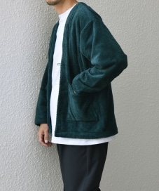 〔LARGE〕【WEB限定】SHIPS any: パイナップル フリース 1ボタン Vネック カーディガン◇