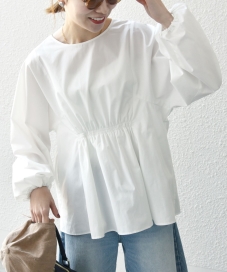 〔ONE SIZE〕《一部追加予約》SHIPS any:〈洗濯機可能〉REPREVE ギャザー パフシャツ ブラウス