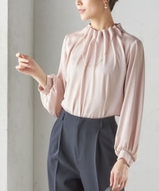 〔ONE SIZE〕〈手洗い可能〉ヴィンテージ サテン ネック ギャザー ブラウス