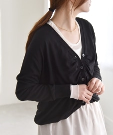 〔ONE SIZE〕quaranciel:〈手洗い可能〉シルク ミックス ギャザー ニット カーディガン