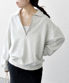 〔MEDIUM〕SHIPS any: ワンポイント 刺繍 ロゴ ハーフジップ ポロ スウェット (ユニセックス)◇