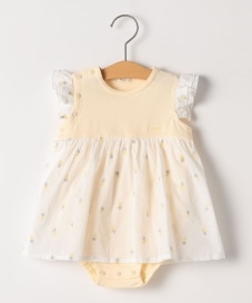 お花の刺繍がとても可愛いく、スカートタイプのロンパースです。