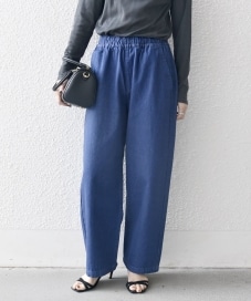 着用アイテム:フリーサイズ カラー/ネップ デニム イージーパンツ(ユニセックス) ブルーWOMEN