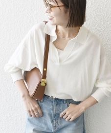 〔ONE SIZE〕SHIPS any:〈UVカット/手洗い可能〉シアー スキッパー ニット ポロシャツ