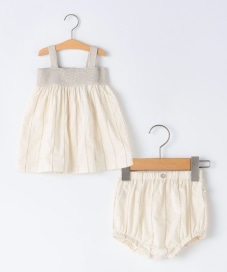 [1+in the family]のセットロンパース☆ニットとの組み合わせが可愛らしい♪後ろが釦になってて後姿も可愛いです♪ブルマ付きも嬉しいポイント◎