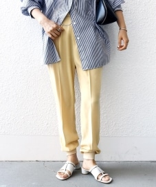 【素材感・着心地】パステルカラーが春夏らしいイージーリブパンツ。なめらかな履き心地。