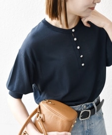 着用アイテム :ビジュー ヘンリーネック ニット プルオーバー ネイビー ONESIZE