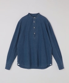 〔MEDIUM〕Errico Formicola: リネン/コットン デニム バンドカラー シャツ