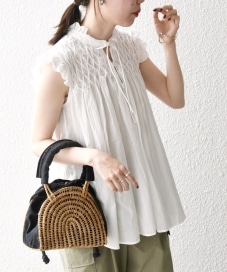 着用アイテム :ハンドスモッキング コットン ノースリーブ ブラウス オフホワイトONESIZE