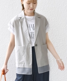 〔ONE SIZE〕【WEB限定】〈手洗い可能〉シアー コンビ テーラード ベスト
