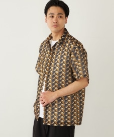 【素材感・着心地】メッシュ素材に総柄プリントを施したデザインショートスリーブシャツ。