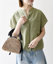 着用アイテム:グロッシー ドロスト バンドカラー フレンチ シャツ オリーブ