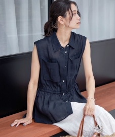 〔ONE SIZE〕〈手洗い可能〉IMPERIAL LINEN Wポケット ノースリーブ シャツ