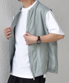 〔LARGE〕SHIPS any:〈洗濯機可能〉NOVELTEX リネン ジップ ベスト(セットアップ対応)◇