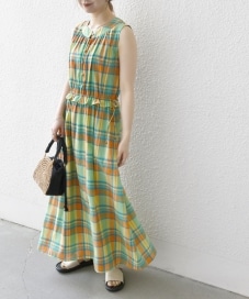 〔ONE SIZE〕SHIPS any:〈洗濯機可能〉マドラス チェック ノースリーブ ワンピース