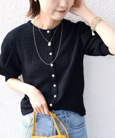 素材感:軽やかで凹凸感のあるサッカー素材。見た目にも涼しげで、夏場でもサラッと羽織れる質感です。