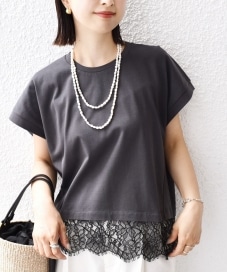 〔ONE SIZE〕【WEB限定】〈手洗い可能〉裾 レース コンビ プルオーバー