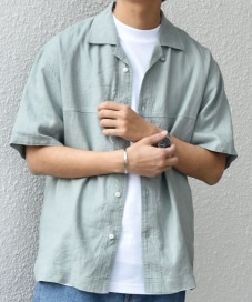 〔MEDIUM〕SHIPS any:〈洗濯機可能〉NOVELTEX リネン オープンカラーシャツ(セットアップ対応)◇